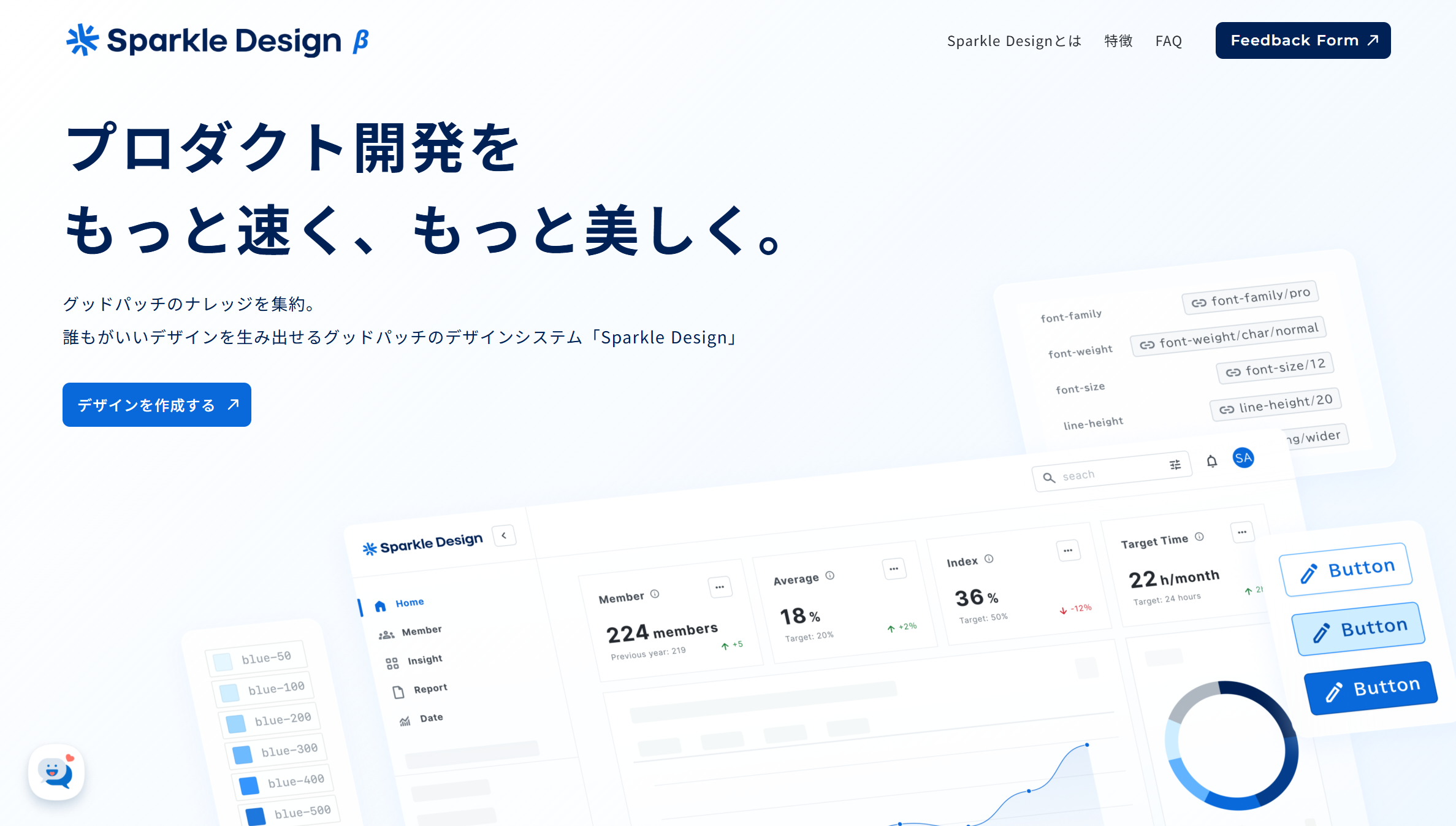 UI/UXデザインカンパニーであるグッドパッチが、多様なクライアントワークを通じて培ってきた実践的な知見を集約したデザインシステムです。共通部品の設計コストを削減し、チームが「プロダクトの体験設計」という本質的な課題解決に集中できる環境を作ることを目指しています。新規事業の立ち上げや既存事業のリニューアルの「ベース」として活用でき、これからデザインシステムを構築するチームにとって、非常に実践的なお手本となります。