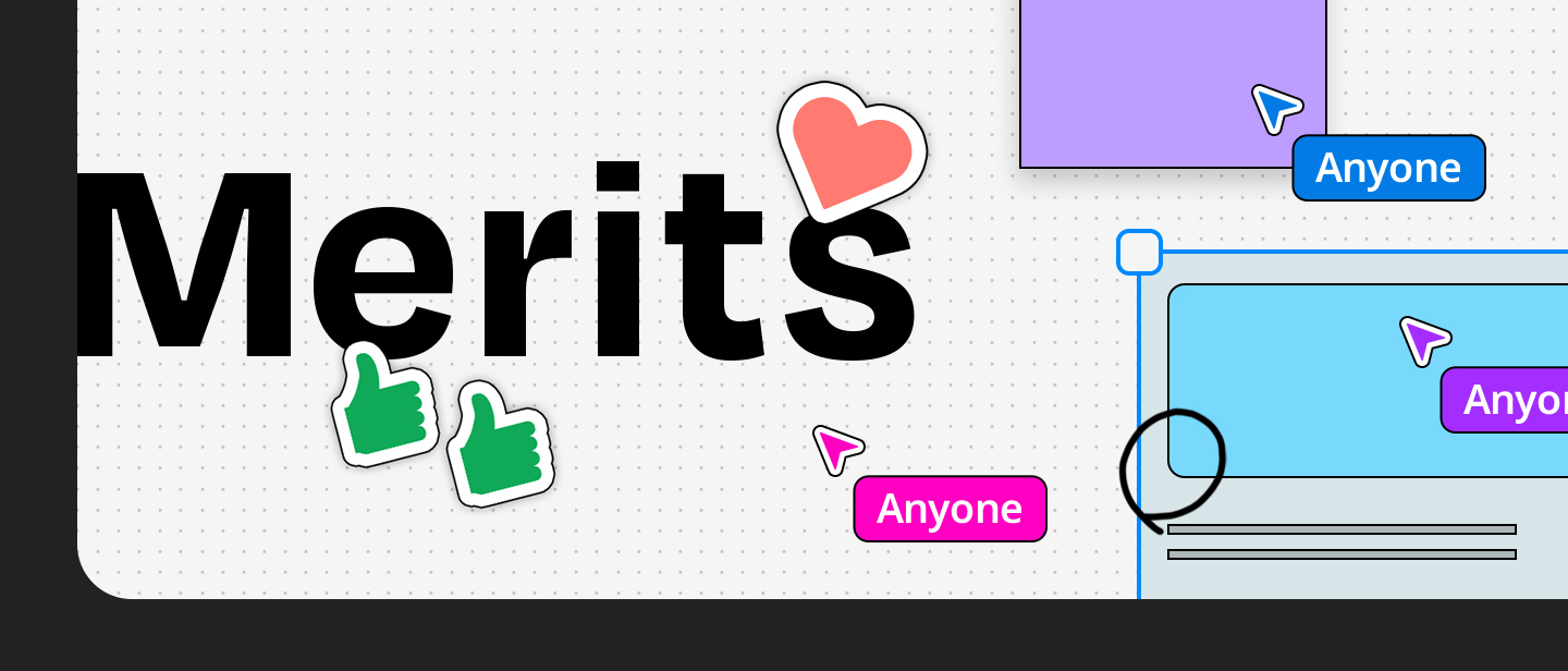 FigJamはシンプルな操作性に加えて、オンラインでの共同作業を円滑にするための豊富な機能を備えています。 リアルタイムでの同時編集はもちろん、スタンプや絵文字でのリアクション機能、議論の時間を管理するタイマー、意見集約に便利な投票機能など、会議やワークショップの質を高めるツールが揃っています。 カーソルチャットを使えば、ボード上で手軽にコミュニケーションを取ることも可能です。