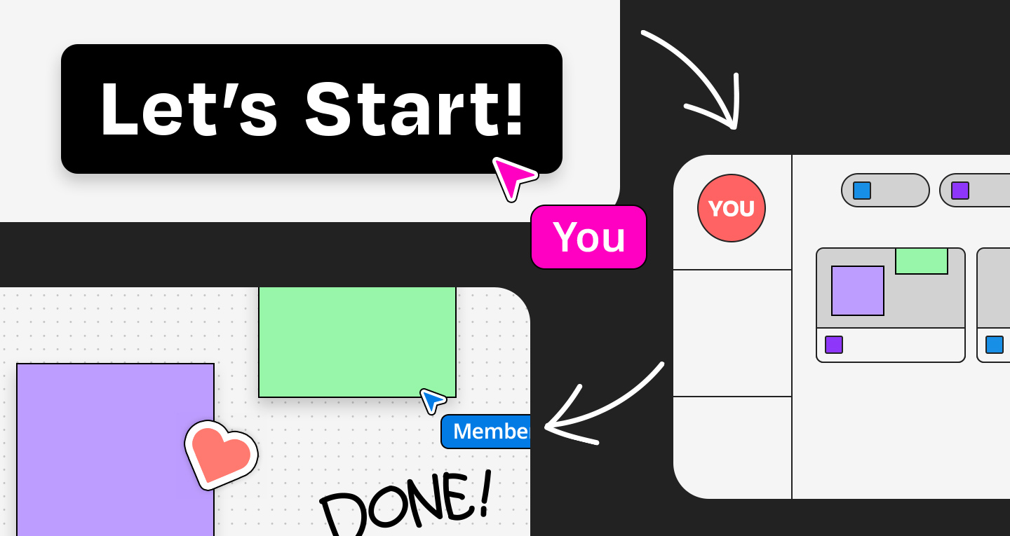 FigJamを初めて利用する方でも、いくつかの基本的な機能を理解することで、すぐにチームとの共同作業を開始できます。 アイデア出しに役立つ付箋、思考を整理するための図形や矢印、自由に書き込めるマーカーペンなど、直感的に使えるツールが豊富に用意されています。