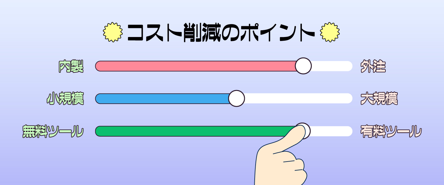 費用を抑える上で効果的なのは、全ての業務を外注するのではなく、自社のリソースで対応できる作業と専門家に任せるべき作業を明確に切り分けることです。例えば、自社にノウハウがある業界知識を活かした記事執筆は内製し、専門的な技術を要するサイト構築やSEOの戦略設計は外部へ依頼するといった分担が考えられます。