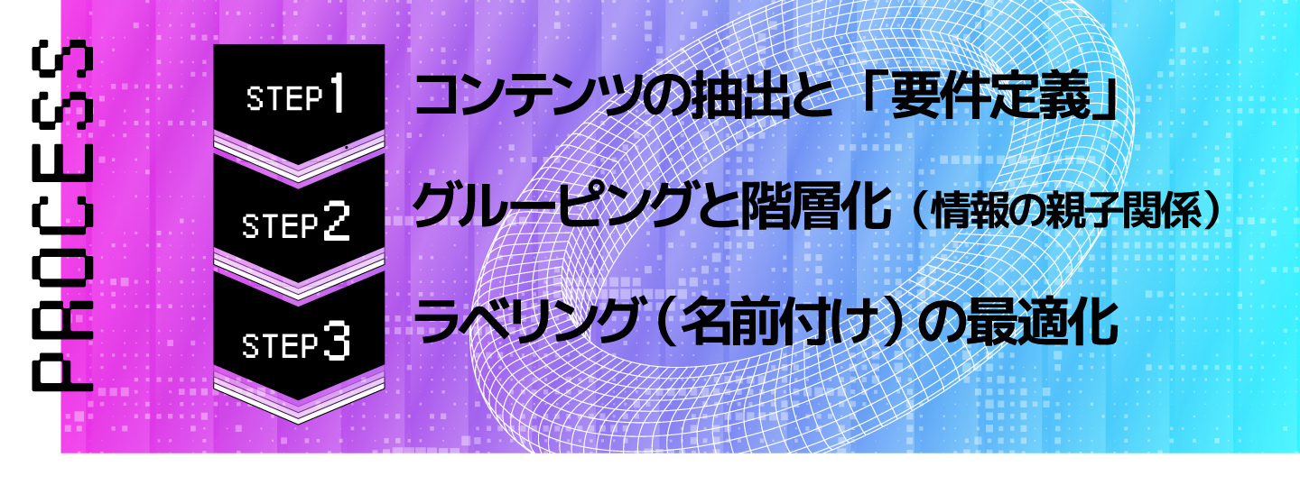 グループ化した情報のまとまりに、名前を付けていきます。この「名前付け」ひとつで、ユーザーの回遊率は劇的に変わります。